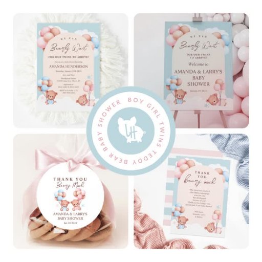 Boy Girl Twins Teddy Bear Baby ShowerDiseñado por Amanda Cudnik
