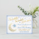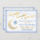 Celebra el cumpleaños de tus niños pequeños con esta encantadora invitación. Una falsa luna de oro y una pequeña estrella con un suave borde azul y estrellas. No es un Relieve metalizado real. Personalizar con su propio texto. Ilustracion original de pj_design.