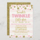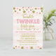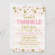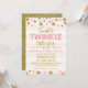Esta tierna invitación al cumpleaños de una estrella es apropiada para un niño de primer año pero puede ser usada para una edad diferente. El diseño presenta algunas estrellas de Relieve metalizado rosa y de color dorado en la parte superior y base de la invitación. El fondo es de rayas rosas y blancas y la parte trasera de la invitación presenta una textura de Relieve metalizado de oro falso. El diseño también incluye un divisor decorativo y un texto de caligrafía. Esta pequeña invitación al cumpleaños de la estrella del chica está lista para ser personalizada.