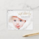 Estrellas de oro tambaleantes caen alrededor de un bebé dulce (personalizar con tu propia foto del recién nacido) con "hola, chico dulce" en el sofisticado guión de efecto purpurina de oro (nota que no se imprimirá ningún purpurina de oro o hoja en el papel - se imprimirá para parecer purpurina de oro). Esta postal de anuncio de nacimiento es simple, moda y dulce, con el guión agregando un toque elegante. Usa una imagen de bebé sobre un fondo blanco suave, así que el texto será legible y las estrellas destacarán. Opcionalmente, no olvides revisar la parte de atrás, donde puedes subir otra foto del bebé en un divertido marco polaroide grabado y añadir un mensaje personal reconfortante a la postal!