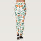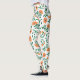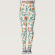 Two images of floral leggings showcase front and back views. Cream background with green leaves and orange flowers, paired with black sneakers.