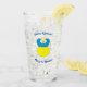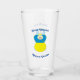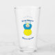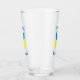 La bandera ucraniana es azul en la parte superior y amarilla en la parte inferior. Aquí tenemos un ángel vestido con la bandera azul y amarilla de Ucrania. Arriba, en letras azules se lee SLAVA UKRAINI. Debajo, en el mismo color están las palabras GLORIA A UCRANIA. Espectáculos aquí en frente y detrás de un vaso de bebida.