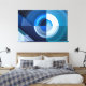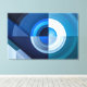 Este lienzo abstracto explora una fascinante combinación de formas geométricas, incluyendo círculos, triángulos y cuadrados, en una paleta de tonos azules profundos y suaves. El diseño yuxtapone elementos tridimensionales con patrones planos, creando un efecto visual que es a la vez moderno y dinámico. Ideal para quienes buscan añadir un toque contemporáneo a su espacio con una obra que invita a la contemplación y el análisis.