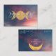 Tarjeta de visita Golden Triple Moon, perfecta para aquellos que quieran añadir energía de diosa o luna a su perfil profesional. Una luna triple dorada, con rayos de energía y estrellas pequeñas, se sitúa contra el vibrante cielo atardecer.