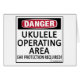 ¡Peligro, Área Operativa Ukulele! ¡Se Requiere Protección De Oídos! Esto es una advertencia clara para cualquiera en torno a instrumentos musicales. Vea todos nuestros diseños musicales en tazas, tazas, camisetas, sudaderas, gorras y otros regalos y ropa.