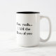Taza de café personalizada de 444ml. ¡En cuanto a tamaño sólo puedo decir que enorme! pero es lo que esperaba así que estupendo. En el asa me entra la mano entera y no sólo tres dedos como me ocurría con las otras tazas. También comentar que es el tamaño que se ve en las series americanas, tanto para café como para infusión. En cuanto al acabado decir que es correcto, con poco tiempo de uso no puedo especificar mucho más. Pude escoger el nombre y el color pero no la tipografía, quizás esa elección pueda decidir a más gente. En términos generales y por el momento, buena opinión.