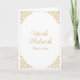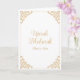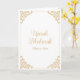 Tarjeta de felicitación islámica musulmana elegante Umrah Mubarak. Celebre con sus seres queridos en esta ocasión religiosa especial. Este producto tiene un diseño de pergamino barroco victoriano dorado en la esquina del borde para un ambiente de lujo. Vintage. Antiguo. Hay una tipografía de escritura dorada. Personalice la información que está escrita como "que tus pecados sean perdonados" y los nombres de la pareja utilizando la herramienta de diseño. Puede elegir el tipo de papel. Felicitaciones. HerLineForDesign en Zazzle.