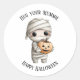 ¡Envuélvete con una sonrisa! Este pegatina de la ronda presenta una adorable momia personalizado con la lúgubre frase "Abraza a tu momia" y "Feliz Halloween" a lo largo del fondo. Perfecto para los niños, para las fiestas, para las maletas, la artesanía y la decoración espeluznante. Mensajes divertidos y de personalizable para hacerlo único suyo. ¡Una manera deliciosa de difundir la alegría de Halloween con un toque momito!