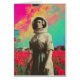Astronauta arte surrealista de una mujer con traje espacial en un campo amapola fotografía de glitch, scifi ai, generó arte en blanco en todas las ocasiones tarjeta de saludo