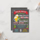 Un bebé super fresco y moderno está preparando fiesta de ducha para bebés. Celebra con cerveza, hamburguesas y haz que tus amigos traigan pañales y cerveza como regalo al fiesta. Tipografía divertida en un fondo negro de pizarra. Ilustracion dibujado a mano por McBooboo.