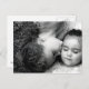 Retrato blanco y negro de dos hermanas jóvenes, una al lado de la otra en direcciones opuestas en el pasto, la hermana mayor besando al menor en la mejilla.