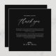 Expresar su aprecio con este Boda Minimal Black Modern de gama alta Gracias, perfecto para parejas que buscan añadir un toque lujoso a su papel de boda formal. Esta minimalista gema presenta una tipografía de caligrafía simple pero llamativa que añade un toque de sofisticación a su más sincero mensaje. Diseñada con sumo cuidado, nuestra elegante y moderna tarjeta de agradecimiento le ofrece un encanto mínimo e intemporal, haciendo que cada momento sea memorable para todos los involucrados. Personalizar el color de fondo, el tipo de letra del texto, el tamaño y la posición a su gusto utilizando la herramienta de diseño. Para ver los elementos que coincidan, visite la colección Black Elegant Minimal Modern Dark Wedding invitaciones.