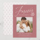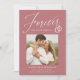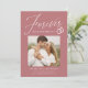 ¡Comparte la noticia de tu compromiso con estas elegantes invitaciones de compromiso fotográfico! Las invitaciones incluyen la frase "Forever tiene un bonito anillo" en un guión de caligrafía blanca acentuado por un ilustracion de anillos bodas sobre un polvoriento fondo rosa. Su foto cuadrada se muestra cerca del centro del diseño con sus nombres y detalles adicionales que se muestran a continuación. La invitación de compromiso moderna se invierte para mostrar un diseño geométrico subió blanco y polvoriento.
