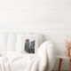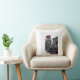 Una linda foto en blanco y negro de y búho en china, con acentos rojos, en una almohada