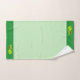 Hermoso cocodrilo sobre el juego de toallas de baño verde.