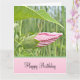 Un brote de flores rosa bonito trae deseos para un "cumpleaños feliz". Dentro del versículo hay deseos de felicidad y amor. La tarjeta perfecta para esa persona especial.