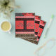 El diseño presenta un patrón llamativo que podría utilizarse para el diseño de tejidos o papel pintado. Aquí hay una descripción detallada: ・ Sección superior: Esta parte tiene un patrón de chevron en blanco y negro, acentuado con diseños florales rojos. ・ Sección central: Banda horizontal amplia de color rojo con intrincados patrones florales blancos y una franja vertical negra en el centro. ・ Sección inferior: Un diseño elaborado de oro y negro inspirado en patrones de paisajes tradicionales, con un motivo central negro que tiene elementos simétricos. La combinación de motivos geométricos y florales, junto con la mezcla de colores, hace que este diseño sea bastante único y versátil.