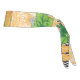 El diseño parece ser una sección de tela con un diseño detallado e intrincado. Aquí hay una descripción detallada: ・ Paleta de colores: El diseño presenta una combinación dominante de verde, amarillo y negro. ・ Motivos: En el centro superior, hay un gran diseño paisajista con fondo amarillo, con motivos más pequeños. Debajo de esto, hay una banda de follaje verde y flores que transitan a un patrón a cuadros, seguido de otra banda de elementos decorativos verdes. ・ Sección inferior: La parte inferior del diseño tiene motivos florales negros sobre un fondo blanco. Este diseño intrincado y vibrante es característico de los patrones textiles tradicionales. Se podría usar en varias aplicaciones como ropa, decoración doméstica o accesorios.