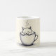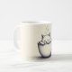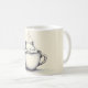 Un ilustracion reconfortante de un gatito somnoliento acurrucado en un taza humeante, que evoca una sensación de calidez y relajación.