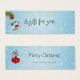 Una tarjeta de visita delgada que puedes usar como etiqueta de regalo. Un diseño de navidades divertido y lindo. Un gatito blanco siamés travieso y divertido. Está mirando hacia arriba una decoración de un árbol de navidad colgando de una rama de pino preguntándose si debería ser traviesa y jugar con ella o no. El texto dice Feliz Navidad con una tipografía caprichosa. Sobre un fondo azul con copos de nieve blancos. Todo el texto se cambia fácilmente según tus necesidades. En el frente dice: un regalo para ti. En la parte de atrás dice: Feliz Navidad, con tu nombre personalizado.