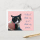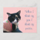 Un mensaje pacífico y amable, cuando pienso en ti, pienso en la paz, está impreso junto a un lindo gato de esmoquin blanco y negro con un vestido de rayas rosas y blancas, impreso en postales. Gracias por comprar en CherylsArt en Zazzle.