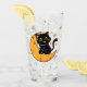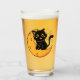 Ilustracion de un lindo y feliz gato negro sentado en la luna amarilla con estrellas en el fondo