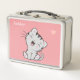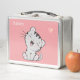 Cuidado gato de tabby con el corazón sobre fondo rosa claro. Nombre texto listo para ser personalizado.