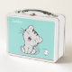 Cute gato y ratón tabby sobre fondo azul claro. Nombre texto listo para ser personalizado.