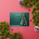 Magnífico guión de Relieve metalizado dorado sobre un elegante fondo verde y un árbol de Navidad que da la única ilusión de mirar 3D completo con una estrella de bonito en la parte superior. Un moderno garabato manuscrito encima de tu saludo personalizado en una moderna tarjeta de vacaciones no plegada con fotos.