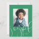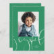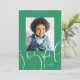 Esta tarjeta de vacaciones de una sola foto incluye un guión moderno "alegre" junto con un mensaje personalizado y tu foto sobre un fondo verde festivo. Esta tarjeta de foto sencilla y de moda es perfecta para familias, parejas, abuelos y más. Buscar otros colores y estilos en la colección. Esta tarjeta también está disponible como descarga digital de tarjetas de vacaciones.