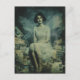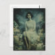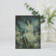 Un lindo hada se sienta en un montón de postales vintage