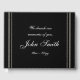 Este minimalista libro de visitas funerarias o conmemorativas muestra el mensaje "Apreciamos a nuestros recuerdos de ustedes", y el nombre personalizado y las fechas de nacimiento y muerte del individuo que ha fallecido. Se podría usar para registrar recuerdos preciados de alguien que ha fallecido recientemente.