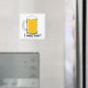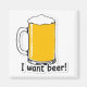 Imagen del imán: taza de cerveza con espuma. Inscripción: Quiero una cerveza.