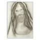Un bosquejo blanco y negro simple del lápiz de un Jesús de mirada solemne en un traje