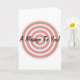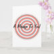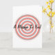 Una tarjeta de felicitación personalizable con un diseño simple, colorido y retro de círculo concéntrico impreso en la parte delantera. Las palabras "¡Un mensaje para ti!" se imprimen en todos los círculos. Puede cambiar el texto en la parte delantera y hay espacio para que escriba su mensaje en el interior de la tarjeta. También puede cambiar el color de fondo de la tarjeta, pero puede influir en los colores del círculo concéntrico.