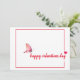 Esta es una tarjeta de felicitación al estilo postal. Un diseño simple con tipo. Un delgado borde rojo rodea este tipo de script, que dice "feliz día de San Valentín. Hay una mariposa rosa y un corazón rojo para los acentos. También hay líneas reguladas para la dirección de correo. Si no desea utilizar esta tarjeta como postal, puede eliminar las líneas gobernadas y utilizar esta tarjeta con un sobre.