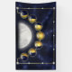 Este diseño brillante ilustra el ciclo lunar en oro brillante y azul profundo. Las joyas que representan las fases de la luna corren en un semicírculo desde la media luna de cera hasta el primer trimestre, encerando a los gibús, la luna llena, el gibús menguante, el último trimestre, y terminando en una media luna menguante. Están colocados en un fondo fractal como el cielo estrellado, con una foto en la luna resplandeciente y plateada de la NASA para completar la pieza.