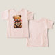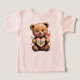 Un lindo ilustracion de estilo vintage de un pequeño oso de peluche sosteniendo una tarjeta en forma de corazón con las palabras "te amo" escritas en ella. El oso tiene una expresión alegre, con ojos grandes y mejillas rosadas. El estilo general es suave y lúdico, que recuerda a los ilustraciones clásicos infantiles de mediados del siglo XX, con colores cálidos y acogedores.