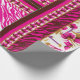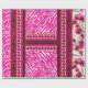 El diseño parece ser un diseño para una prenda de vestir, posiblemente un vestido o tela tradicional. Aquí hay una descripción detallada: ・ Sección superior: Presenta un patrón floral con flores rosas y hojas verdes sobre un fondo blanco. El escote está adornado con motivos dorados y rosas. ・ Banda media: Contiene una huella animal en rosa y blanco, bordeada por dos delgadas franjas doradas. ・ Sección inferior: Repite ampliamente el patrón de impresión animal. La combinación de estampados florales y animales crea una declaración de moda vibrante y audaz, posiblemente para vestimenta cultural.