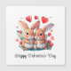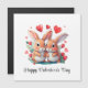 Un par de divertidos conejos acuarelas rodeados de flores y corazones. Un maravilloso regalo El día de San Valentín para una pareja enamorada. La inscripción en el producto: Feliz Día de San Valentín