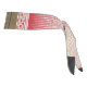 El diseño presenta una variedad de patrones textiles intrincados, probablemente a partir de un trozo de ropa o tela. Esta es una descripción detallada: ・ Sección superior: Esta parte muestra un diseño detallado con tonos rojos y dorados, con motivos florales o paisajistas. ・ Sección central: Por debajo del diseño superior, hay varias bandas horizontales con diferentes patrones, incluyendo formas geométricas y líneas en tonos rosados, blancos y dorados. ・ Sección inferior: La parte inferior repite el diseño intrincado que se ve en la parte superior pero en un fondo más ligero. La complejidad y belleza de estos diseños los hacen adecuados para el diseño de moda o estudios culturales