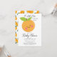 Una pequeña cubata está en el camino de la ducha para bebés con un adorable naranja de clementina sobre un fondo blanco. Voltea nuestra invitación para ver una coordinación hacia atrás con un fondo de naranjas. Visita nuestra tienda para ver nuestra adorable colección de diseño.