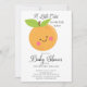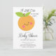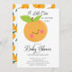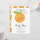 Una pequeña cubata está en el camino de la ducha para bebés con un adorable naranja de clementina sobre un fondo blanco. Voltea nuestra invitación para ver una coordinación hacia atrás con un fondo de naranjas. Visita nuestra tienda para ver nuestra adorable colección de diseño.