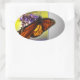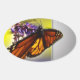 Fotografía de una mariposa monarca sobre una flor morada tomada en la Exposición de Mariposa en el Zoológico de Boise, Idaho por Robin Cox.