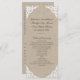 El encaje vintage de este programa de bodas de color burlap ha sido bellamente ilustrado.