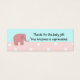 Un elefante rosa sobre un suave fondo azul, rosa y blanco de polka. ¡Una manera dulce de decir gracias! Personalizar con el nombre en la parte posterior según lo desee.