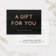 Estos elegantes y ricos certificados de regalo de color negro con texturas presentan una elegante tipografía moderna de rosa falso, de estilo minimalista, que dice "Un regalo para ti". En la parte trasera hay mucho espacio para que pueda personalizares con la información de su tienda o empresa.