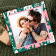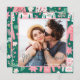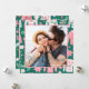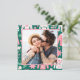 La postal casada de primer año de los Navidades suéteres feos tiene un ambiente atrevido y elegante, combinando un tema retro y botánico con una combinación de colores rosa pastel y verde. El fondo es un bosque verde rico y profundo, lo que crea un sorprendente contraste para los elementos más ligeros y juguetones de la parte superior.