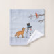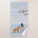 Un cardenal encaramado en una rama de árbol observa como un zorro investiga a un muñeco de nieve que algunos niños dejaron atrás en una fría mañana de invierno.