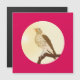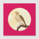 El zorzal común es más pequeño que un mirlo. Un visitante familiar del jardín que tiene un canto hermoso y fuerte. Su costumbre de repetir frases de la canción lo distingue de los mirlos cantores. Encontrarás zorzales comunes dondequiera que haya arbustos y árboles, en bosques, setos, parques y jardines. Le gusta comer lombrices, caracoles y frutas. Esta es una ilustración en una tarjeta rosa.